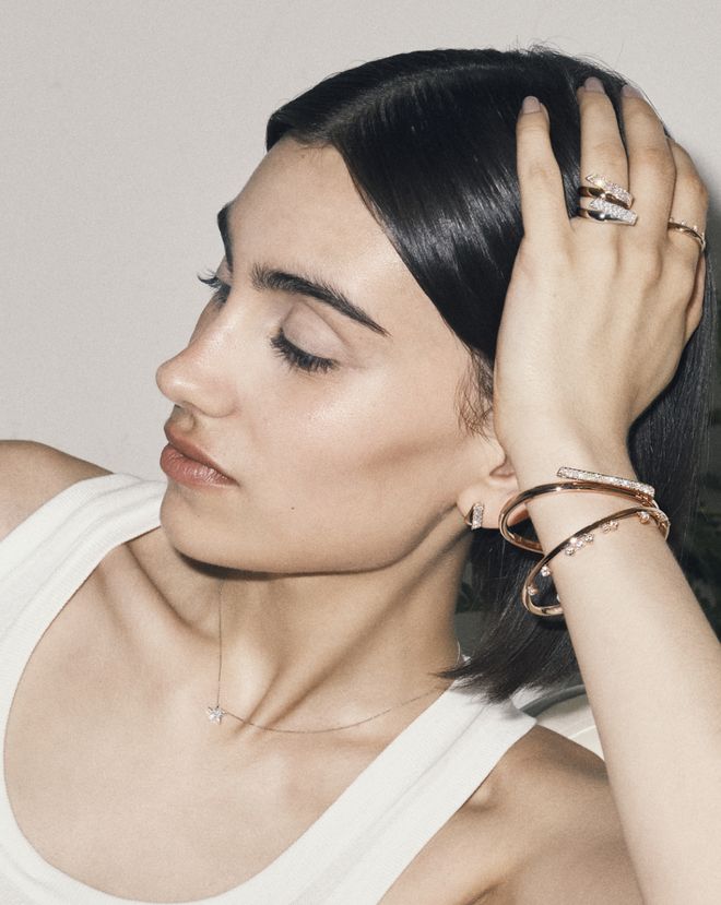这条项链延续了Wulu Eternity系列的标志圆环设计。一条18K玫瑰金打造的项链下方悬挂着一颗圆环吊坠,圆环轻旋呼应中国传统文化中“时来运转”的寓意。